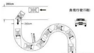 车辆靠近右边行驶,当左车角与右边缘曲线相重合时,方向往左打一圈,微调方向,让左车角始终和右边缘曲线基本重合,保持一定角度沿着S路向左转弯,车子就不会压线或者出线。驶过左弯后将反向转弯。