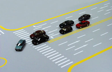 2、在交叉路口左转弯时,应提前减速进入左转弯车道(有左转待转区的路口,应在绿灯亮时进入待转区)或靠道路左侧等待。