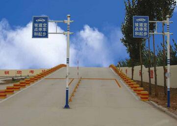 在坡道场地内,考试车辆在进入直线坡道后,将车定点停在起车处,前方车头必须与右侧参照标杆持平,随后在规定的30秒内起车驶出坡道。