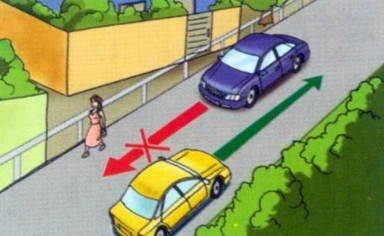 3、在狭窄的坡路,上坡的一方先行,但下坡的一方已行至中途而上坡的一方未上坡时,下坡的一方先行。
