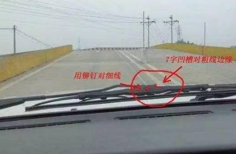 一般追线的参照物,就是车前盖的凸起,雨刮器的节点和后视镜(一般是右后视镜,除了停车取卡是靠左停)中车前门把手。