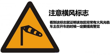 在部分会发生横风的路段我们会看到下图这样的标志:注意横风。注意横风标志目的是提醒驾驶员前方有较强的侧向风,应做好准备。