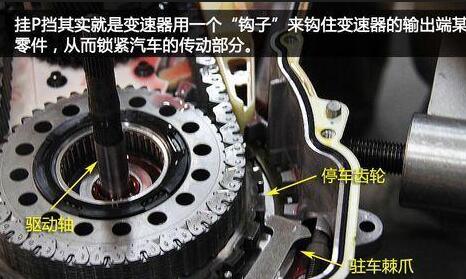 (自动挡)驻车原理:“P档作为驻车挡位,有一定驻车制动力。它的锁止机构是由带锁止齿的驻车锁、带齿轮的驻车锁止轮组成的。停车时,挡位推入P档时,压板下压,锁止齿咬合,变速箱驱动轮锁止,这样车子就停住了。”