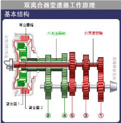 双离合变速器有别于一般的自动变速器系统,它基于手动变速器而又属于自动变速器,除了拥有手动变速器的灵活性及自动变速器的舒适性外,还能提供无间断的动力输出。而传统的手动变速器使用一台离合器,当换挡时,驾驶员须踩下离合器踏板,使不同挡的齿轮做出啮合动作,而动力就在换挡期间出现间断,令输出表现有所断续。