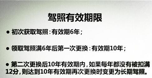 如果在这6年里,每个记分周期都没有扣满12分,到体检换证的时候就可以换成有效期10年的;如果在之后的10年里,同样是每个记分周期未扣满12分,就可以体检换证成终身有效的。