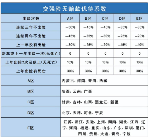 以E区的上海为例,一辆6座以下的家庭自用车,连续三年不出险,最多能优惠30%,为665元;6座以上则能降到770元。