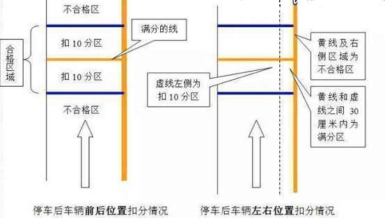 (2)车辆停止后,汽车前保险杠未定于桩杆线上,且前后不超出50cm的,扣10分;