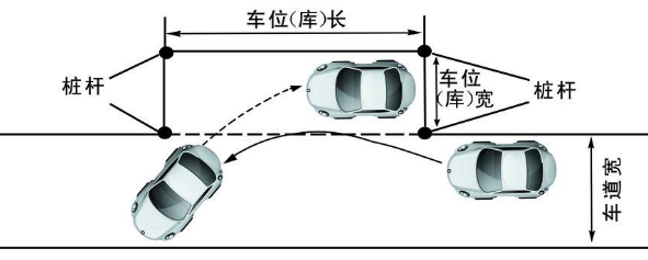 一个边距(右车轮离库边线30厘米),三个点位(往右打死方向盘,回正方向盘,往左打死方向盘,打方向盘速度要快)。