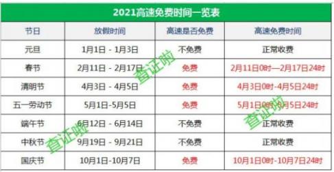2021年高速免费时间一览表