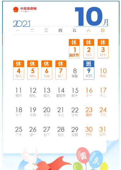 国庆放假2021放假安排调休