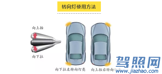 转向灯开关是控制转向信号灯的操纵装置,与前照灯共用一个操作杆。向上抬杆,开启右转向灯;向下按杆,开启左转向灯。
