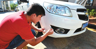 所有的车都有擦伤,最好的修补方法是伤痕部分填上与车身相同的镀膜剂。镀膜剂可涂一次、二次、三次,次数越多,会涂得越干净。但整个车身的均匀处理也很重要。