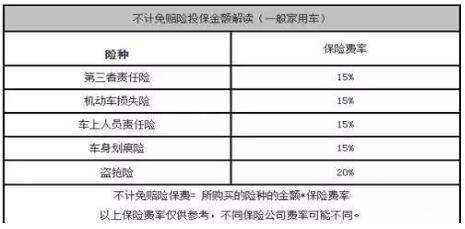 那不计免赔险的投保金额是多少?我们了解到国家相关的部门针对不同保险公司有不同的不计免赔险的保险金额,但下表为比较通行的计算方法。