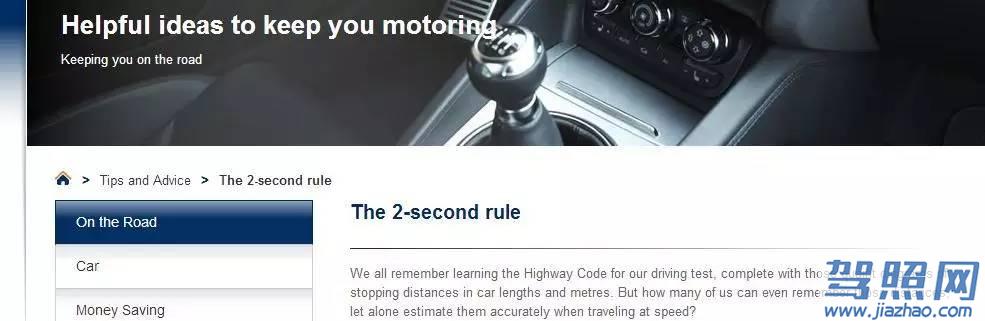 “2秒法则”的具体方法如下:在跟车状态下,驾驶员以路面或路边的某个固定物为参照,前车开过这个参照物后,心中默数2秒。如果数完后,你还没有驶过这个参照物,说明你保留了足够的安全距离。相反,还没数完就驶过参照物,说明你留的距离不够长。在下雨天、大雾天则要改为3秒、4秒,为保证能及时制动。可能大家看文字不一定能具体了解,可以看下图。