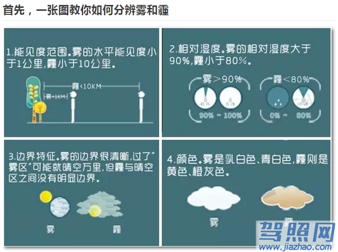 来源:驾照吧 发布:2019-05-30首先,一张图教你如何分辨雾和霾