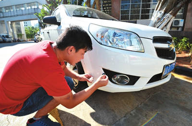 所有的车都有擦伤,最好的修补方法是伤痕部分填上与车身相同的镀膜剂。镀膜剂可涂一次、二次、三次,次数越多,会涂得越干净。但整个车身的均匀处理也很重要。