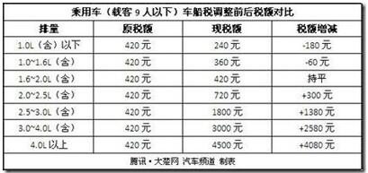 四、改革了乘用车计税依据。《车船税法》采用与车辆在价值上存在着正相关关系的“排气量”作为计税依据,对乘用车按“排气量”划分为7个档次征收。