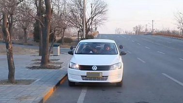 当听到“靠边停车的”的指令时,先确定靠边停车的位置,然后打开右转向灯,向右转动方向盘,角度为90度。当车头中间与马路牙子重合时,迅速向左转动方向盘。角度大于180度。当路边与前机器盖位置在1/3至1/2之间时(一般教练更偏向于1/3处,可根据车型大小适当调节),将方向盘回正,此时如果车子出现偏离,对车子进行微量调整。