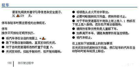 下图是大众朗行关于停车驻车的说明: