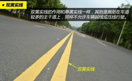 双黄实线的作用和单黄实线一样,也是禁止双方向车辆越线或压线行驶。双黄实线一般施划于单方向有两条或两条以上机动车道,而且没有设置实体中央分隔带的道路上。