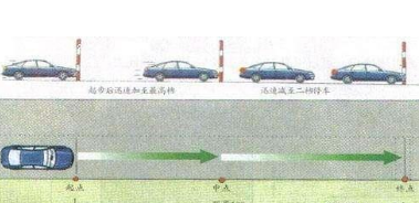 左脚不离开离合,右手不离开档把,起步后就加油加档,到50m处再加5档,然后(70米之前)就开始刹车减档,减到2档便可,距离上还是有一些余量的。整个过程中需要左手控制好方向盘,不要跑偏,因为车身左右偏离位置三十公分就判考试不合格,所以一定要注意。