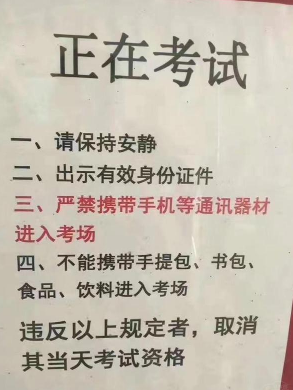2、严禁携带任何通讯设备,也就是手机进入考场;