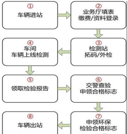 (1)将车开到检测站门口,等待检测(取下车内贵重物品)。