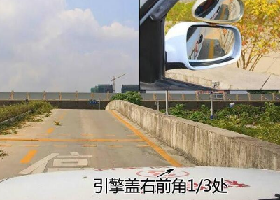 当发现右侧雨刷处的节点纸和右边停车杆重合时迅速踩离合刹车;有的教练是让学员看左侧后视镜下沿完全看到坡道实全部黄线时停车。