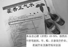 “喝了藿香正气水,真不会构成酒后驾驶?”在现场一位市民问。为此,记者购买了一盒藿香正气水,只见其包装盒上的成份一栏写着:苍术、陈皮、厚朴(蒋制)、白芷、茯苓、大腹皮、生半夏、甘草浸膏、广藿香油、紫苏叶油,辅料为乙醇。