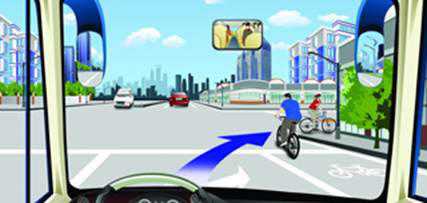 驾驶机动车在这个路口右转弯时要避让非机动车。