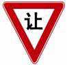 减速让行是倒三角标志、停车让行好像是个“停”字、会车让行是一红一黑的上下两个箭头http://zhinan.jxedt.com/info/297.htm