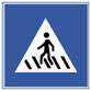 蓝方白三角是指示标志“人行横道”,黄色三角是警示标志“注意行人”,蓝色圆圈里有一大一小两个小人是“步行街”。http://zhinan.jxedt.com/info/297.htm
