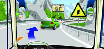 如图所示,前方道路是连续急弯路,在这样的路段是不能超车的。因此本题错误。